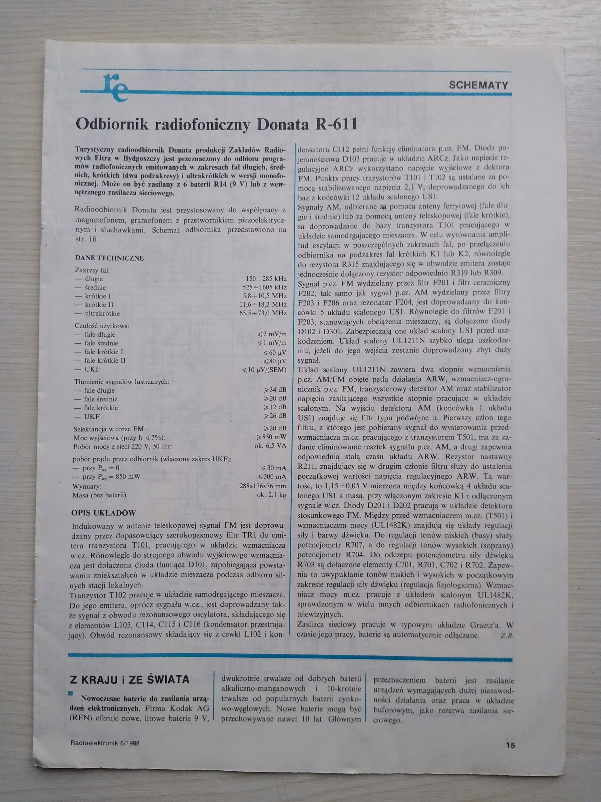 Просматривая «Описание и диаграмма или Donata R-611», вы можете быть уверены, что данный товар из каталога «Инструкции и каталоги» будет доставлен из Польши и проверен на целостность. В цене товара, указанной на сайте, учтена доставка из Польши. Внимание!!! Товары для Евросоюза, согласно законодательству стран Евросоюза, могут отличаться упаковкой или наполнением.