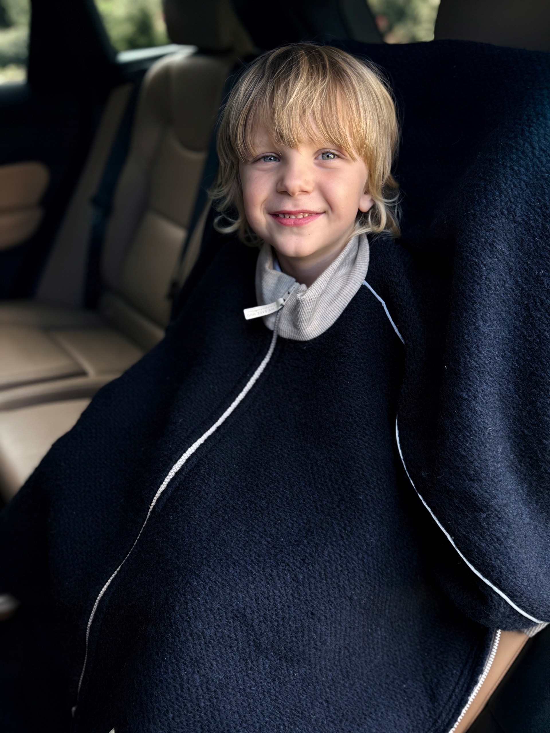 Пончо для автомобильного сиденья Mysafehug. Продукт был создан с любовью их матери, с безопасностью и комфортом детей и комфортом родителей. Свет и натуральный материал заставляет пончо быстро стать незаменимым элементом гардероба вашего малыша.