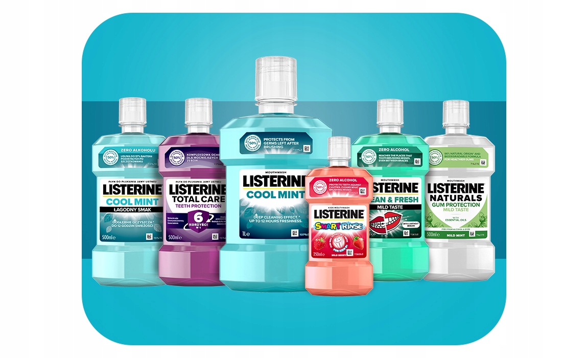 - Listerine® для ежедневной гигиены полости рта для всей семьи.