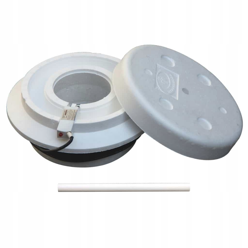 Помимо изоляции пенопластом, предлагаемый вариант оснащен экономичным обогревателем мощностью 35 Вт, работающим от сети. напряжением 12 В и кабелем длиной 8 м. Поэтому при низком энергопотреблении этот обогреватель эффективно защитит водоем, оставив незамерзшую воду внутри проруби. Трансформатор и электрические соединения должны быть защищены от влаги.