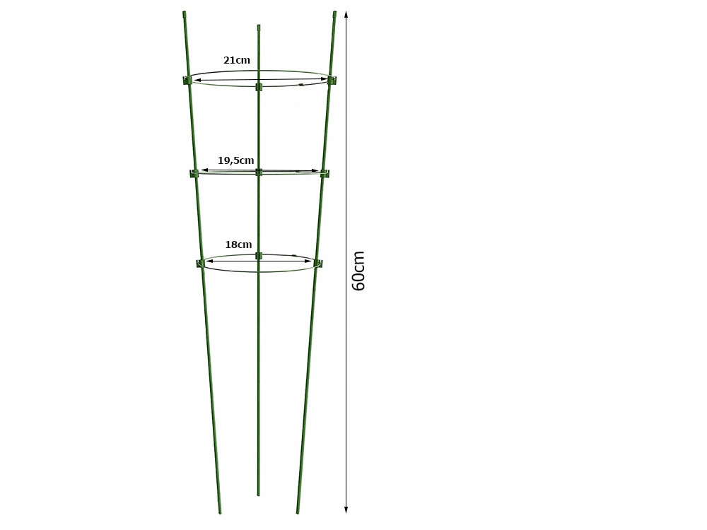 Такая конструкция состоит из трех металлических колец, которые размещаются вокруг стебля растения и затем прикрепляются к земле.