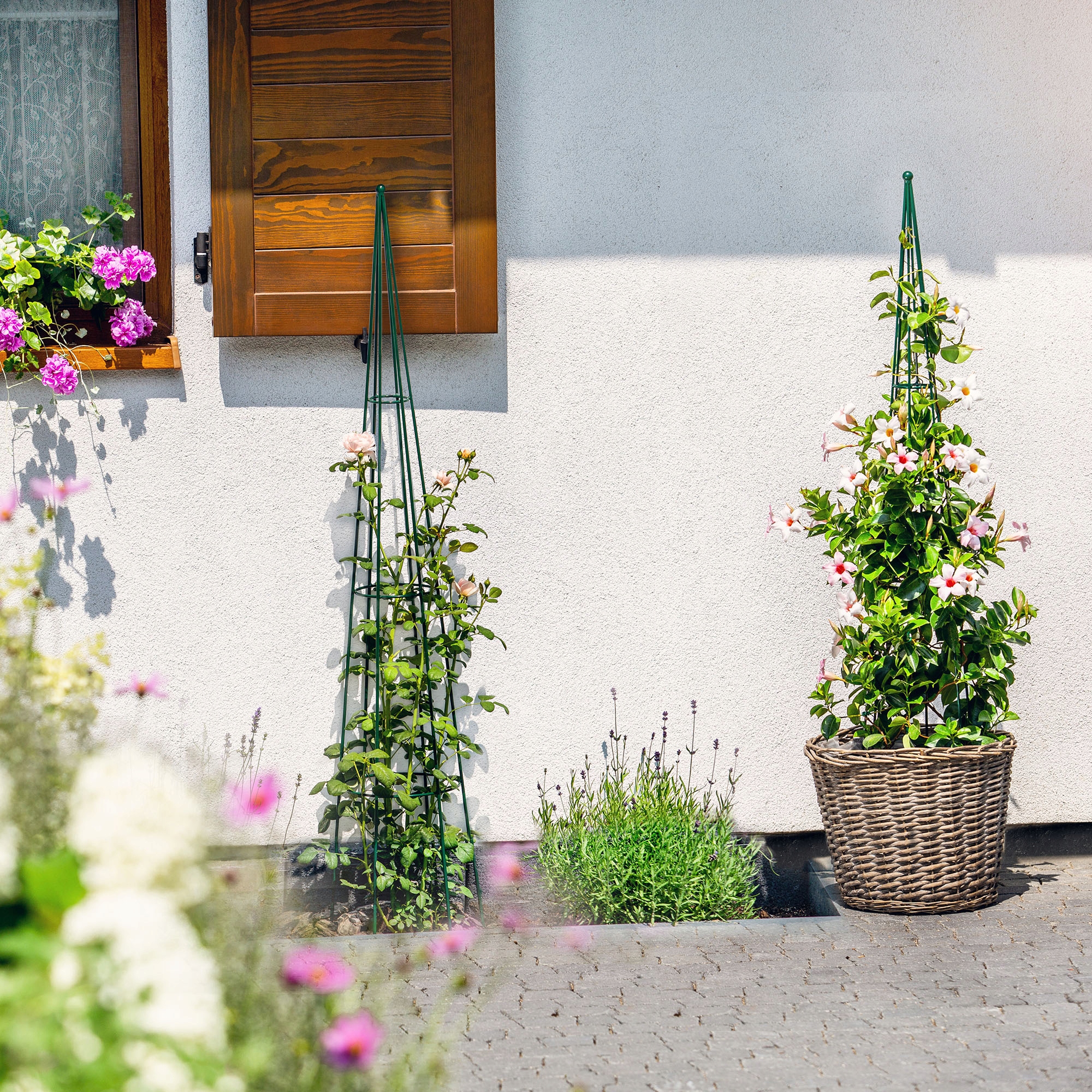 Полезный конус можно использовать как отдельное садовое украшение, воткнутый в землю, но он также хорошо работает в горшках, где позволяет цветам развиваться и расти.