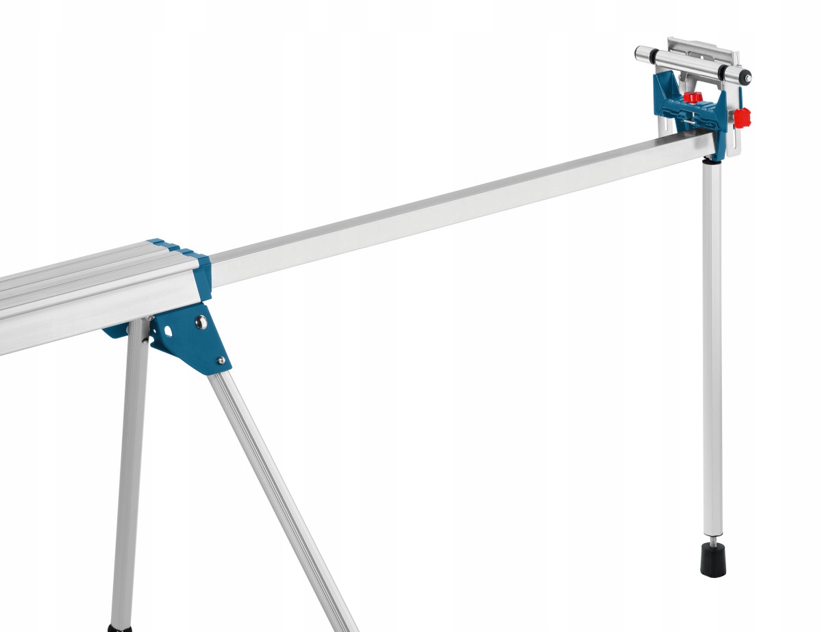 Алюминиевая опора BOSCH дополнительно фиксирует выдвижной кронштейн стола GTA 3800 для резки длинных и тяжелых элементов.