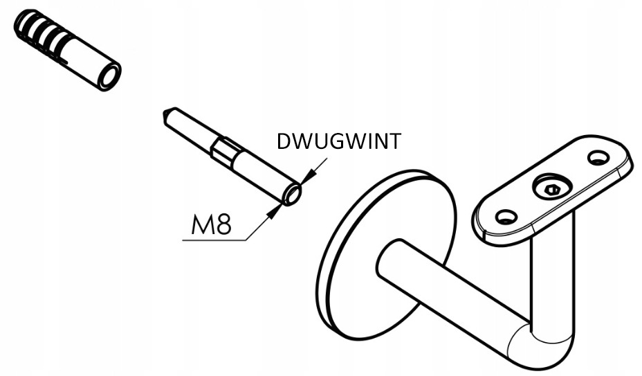 Держатель перил с поверхностной пластиной, крепится к стене, диаметр 60/14 мм, винтом М8