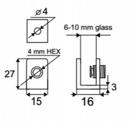Опорная ручка кронштейна стеклянной полки алюминиевое стекло = 6 - 10 мм