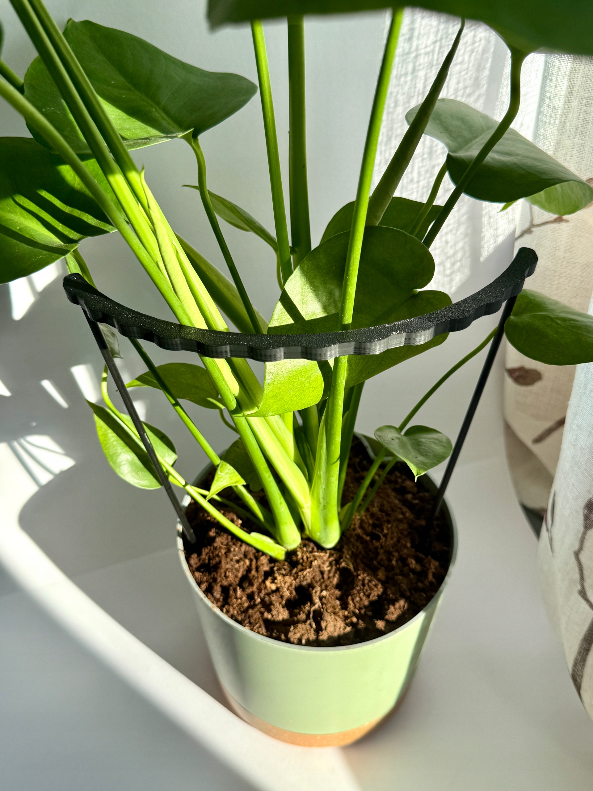 Данная модель опор предназначена особенно для растений раскидистой формы, с более высокими, наклонными, неустойчивыми стеблями.