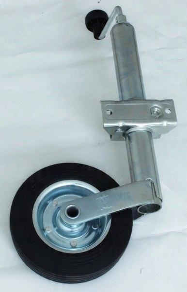 Предлагаем Вам опорное колесо с фиксатором 48 fi для прицепов известной марки Winterhoff. Благодаря ему существенно упрощается маневрирование прицепа, его крепление и снятие с крюка. Круг имеет размеры 200 x 50 мм. Диаметр трубы 48 мм. Колесо изготовлено из материалов высочайшего качества. Его статическая грузоподъемность составляет 150 килограмм. В комплекте с колесом идет оригинальный хомут Winterhoff. Зажим имеет винтовое прижимное устройство и легко устанавливается с помощью двух винтов диаметром 10 мм. Подходит для труб диаметром 48 мм. Рекомендуем также приобрести крепежные винты для опорного колеса.