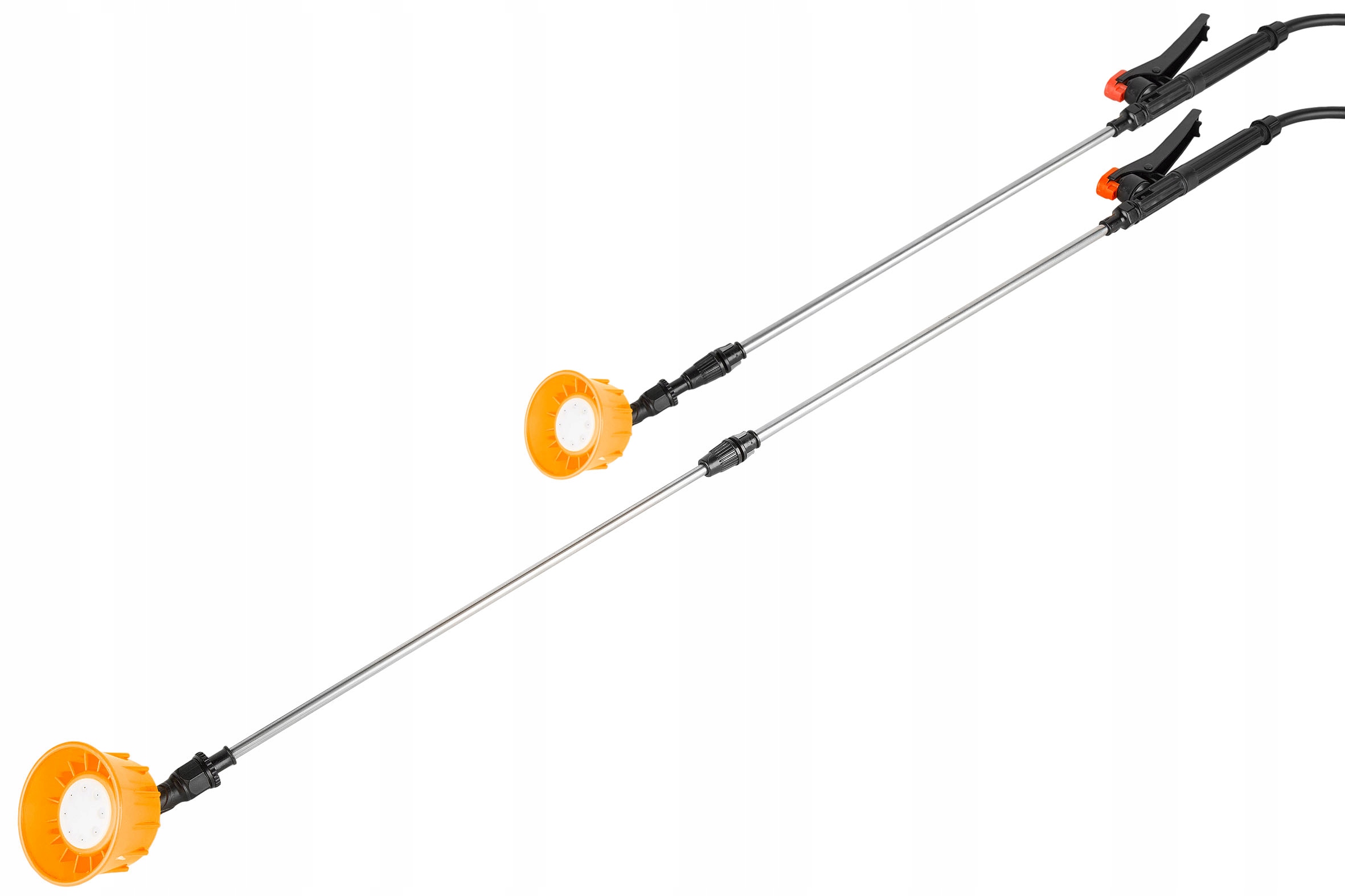 Гибкий шланг (резиновый) и телескопическая штанга с удобным курком и фиксатором, облегчающими бесперебойную работу.