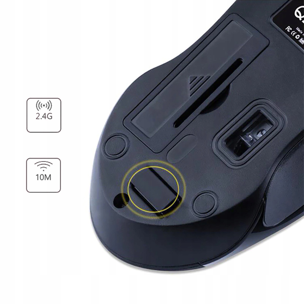 - Мышь подключается по беспроводной сети к входящему в комплект мини-приемнику USB, который в ней ловко спрятан снизу в корпусе. После подключения к компьютеру не требует установки дополнительных драйверов (операционная система сделает это сама)
