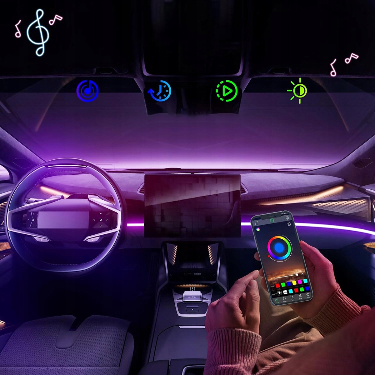 ✴ 【【Синхронизируйте вашу музыку】 благодаря микрофону высокой чувствительности, цвет светодиодного освещения в автомобиле изменяется в ритме музыки, благодаря которому ваше путешествие на автомобиле, выходные или вечерние доступы на работу будут полны энергии и веселья.