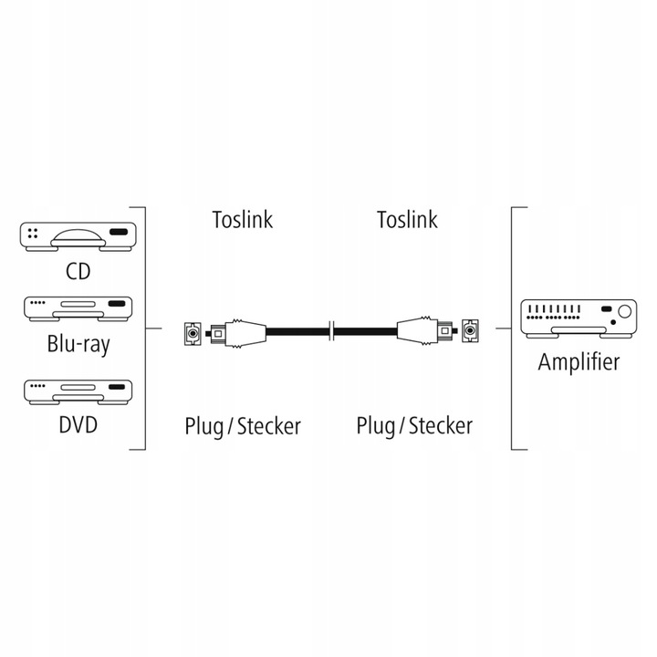 - Оптоволоконный кабель для передачи аудиосигнала, например, между:. Blu-ray-плеер и усилитель.