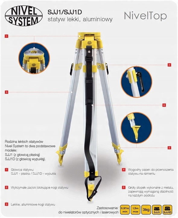 Алюминиевый штатив SJJ1 идеально подходит для оптических и лазерных нивелиров.