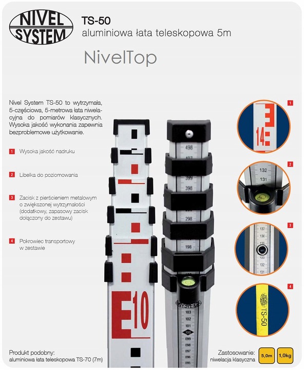 Штока Nivel System TS-50телескопическая алюминиевая нивелирная рейка 5 м