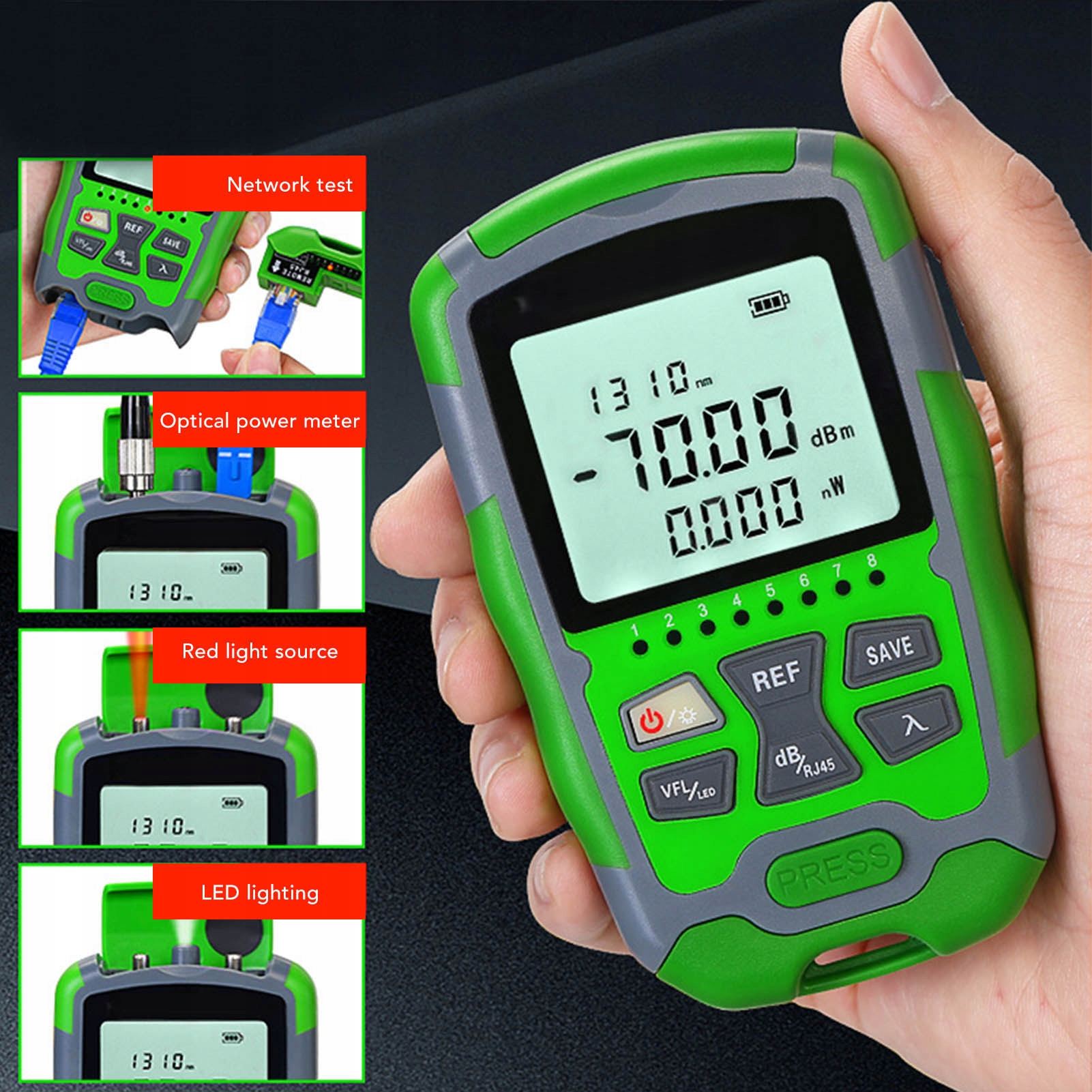 Особенность:1. Лучшее тестирование: этот тестер мощности оптоволокна шириной -70 ~ + 10 дБм также имеет большую точность измерений.