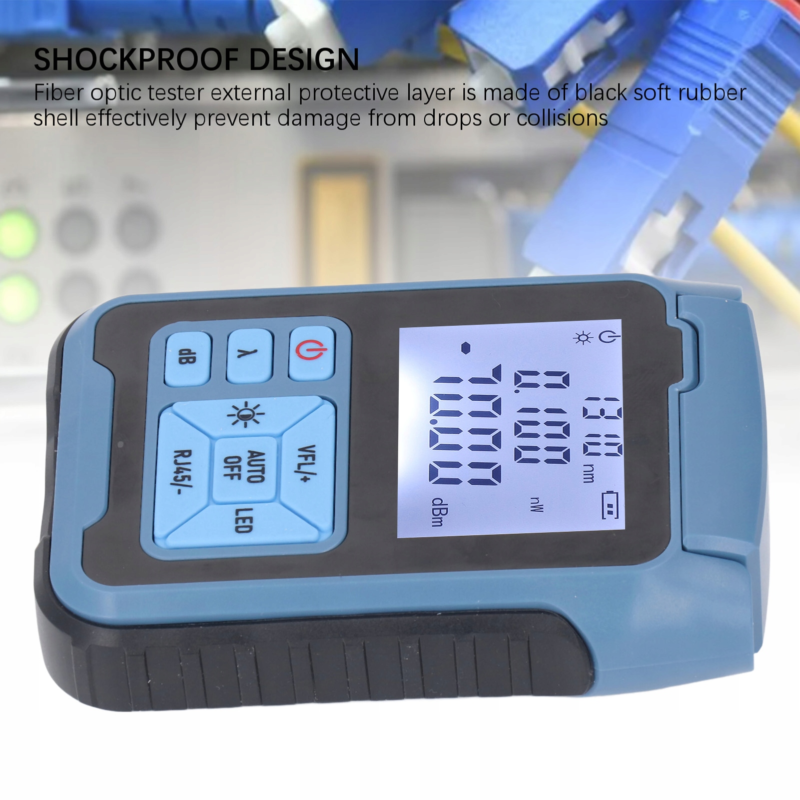 3. Ударопрочный дизайн: внешний защитный слой оптоволоконного тестера изготовлен из черной мягкой резиновой оболочки и эффективно предотвращает повреждения от падений или столкновений