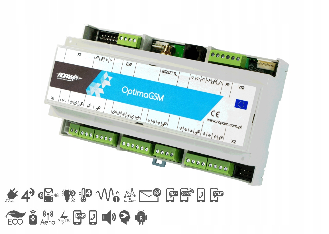 OptimaGSM-D9M ОСНОВНАЯ ПЛАТА ПАНЕЛЬ УПРАВЛЕНИЯ СИГНАЛИЗАЦИЯМИ 8-40 ЛИНИИ GSM МОДУЛЬ DIN ROPAM