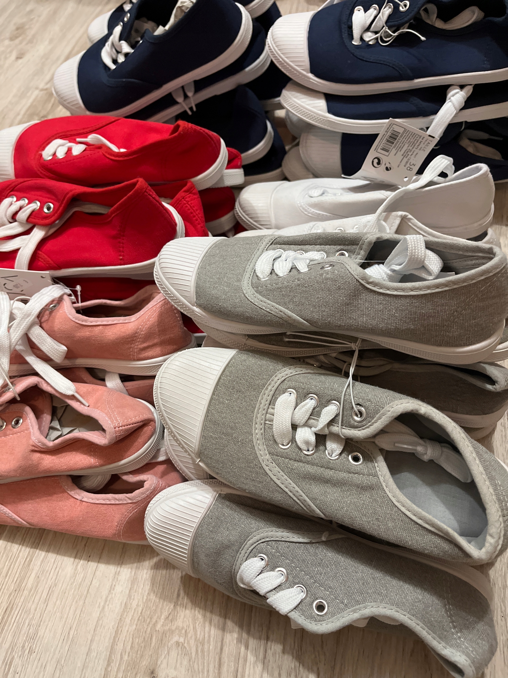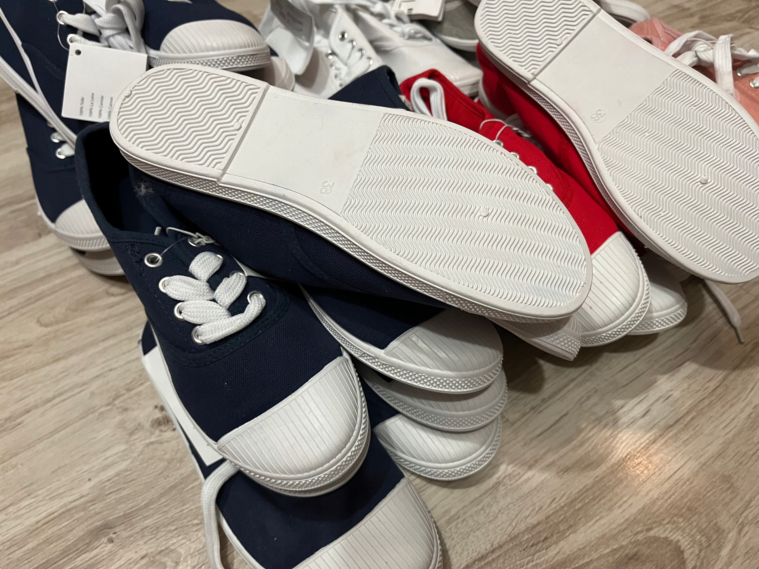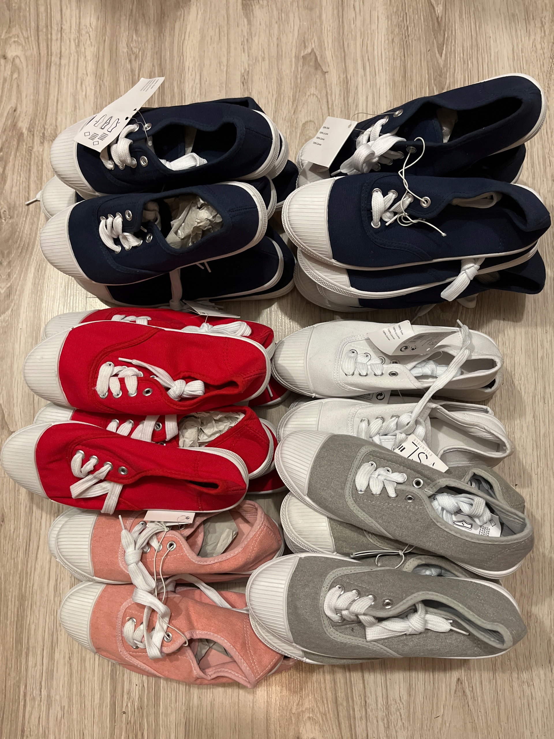 Комплект новой спортивной обуви на белой подошве, завязанной на шнурках, комплект из 20 пар кроссовок.