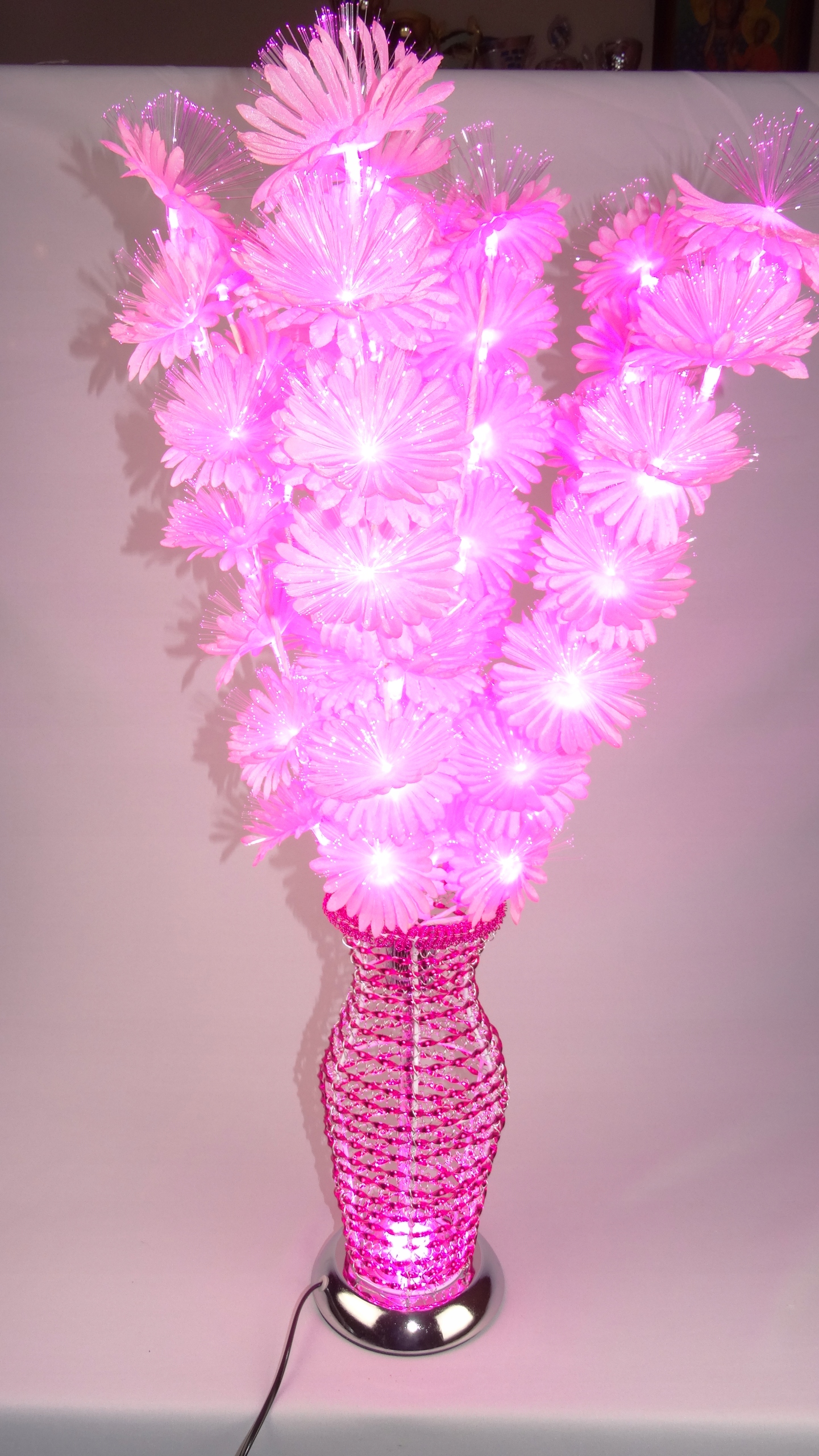 Этот современный набор розовых светодиодных цветов из оптоволокна в вазе ручной работы с подсветкой станет настоящим хитом любого стильного интерьера.