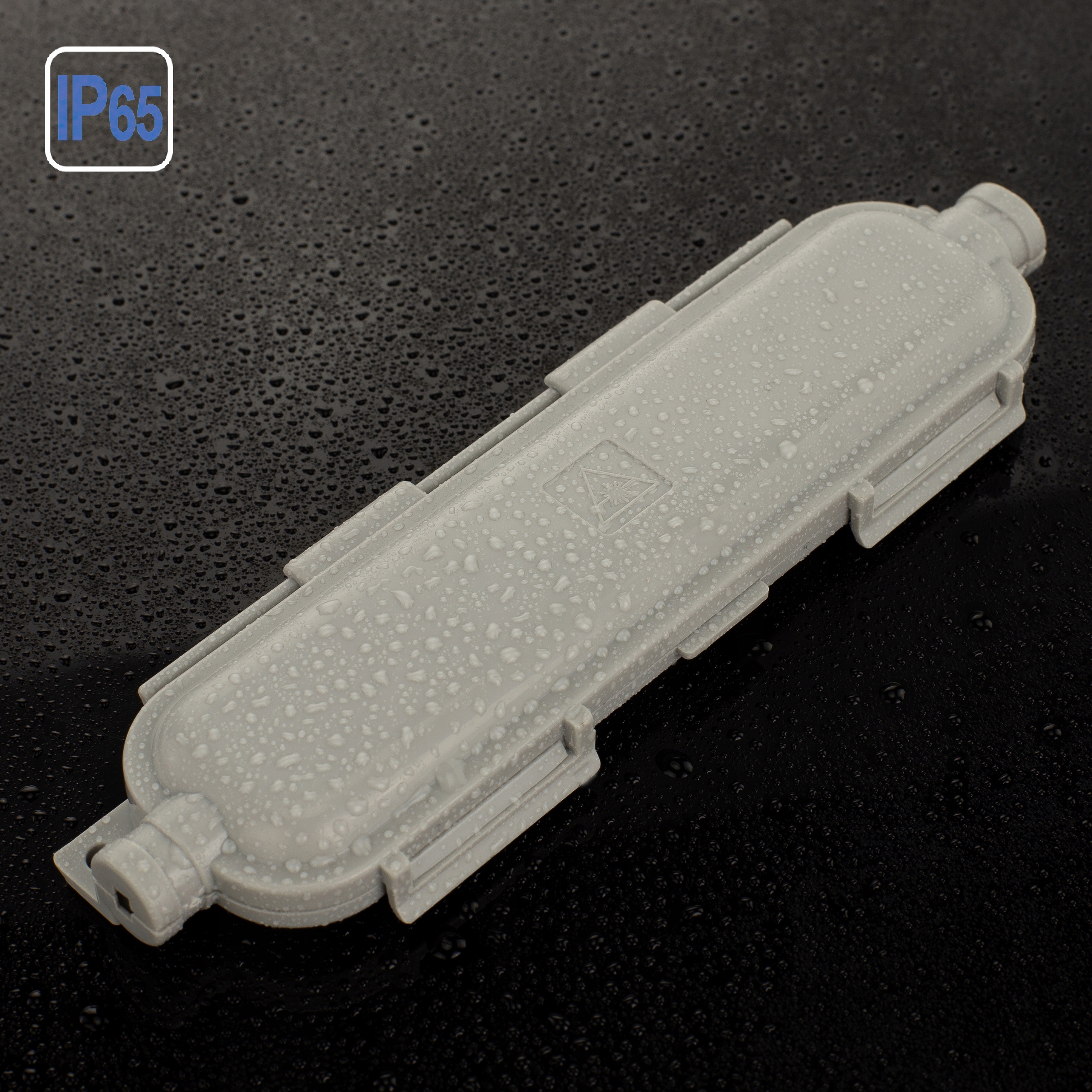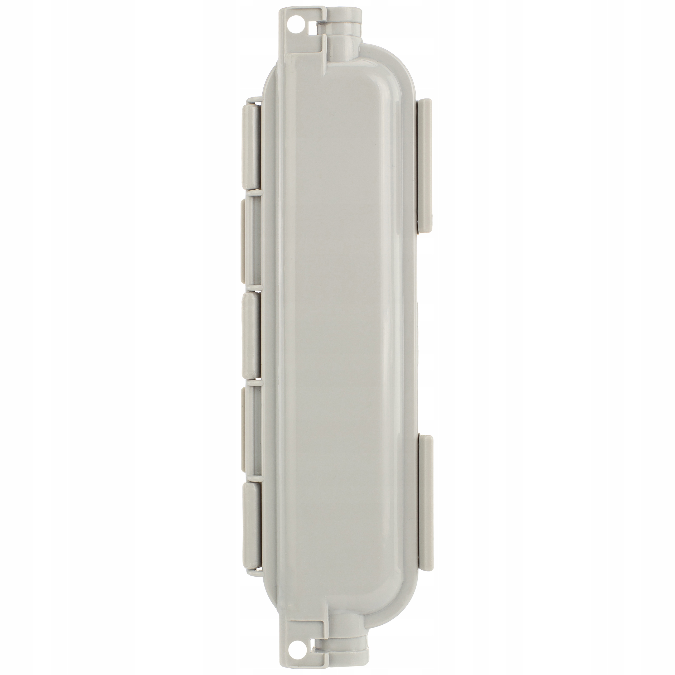Для обеспечения герметичности внутри имеется съемная резиновая прокладка. Муфта закрывается на две защелки — никаких инструментов не требуется. Возможность настенного монтажа благодаря двум отверстиям, расположенным на обоих концах муфты.