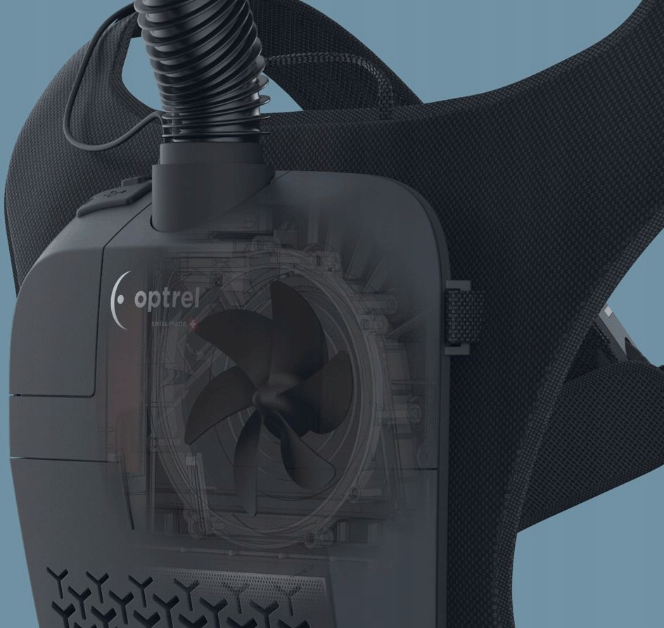 - Система фильтрации и подачи Optrel SWISS AIR постоянно подает свежий, полностью очищенный воздух непосредственно в полумаску пользователя. Уникальный швейцарский дизайн не требует ношения защитной маски и не вызывает нежелательного охлаждения лица или пересыхания глаз.
