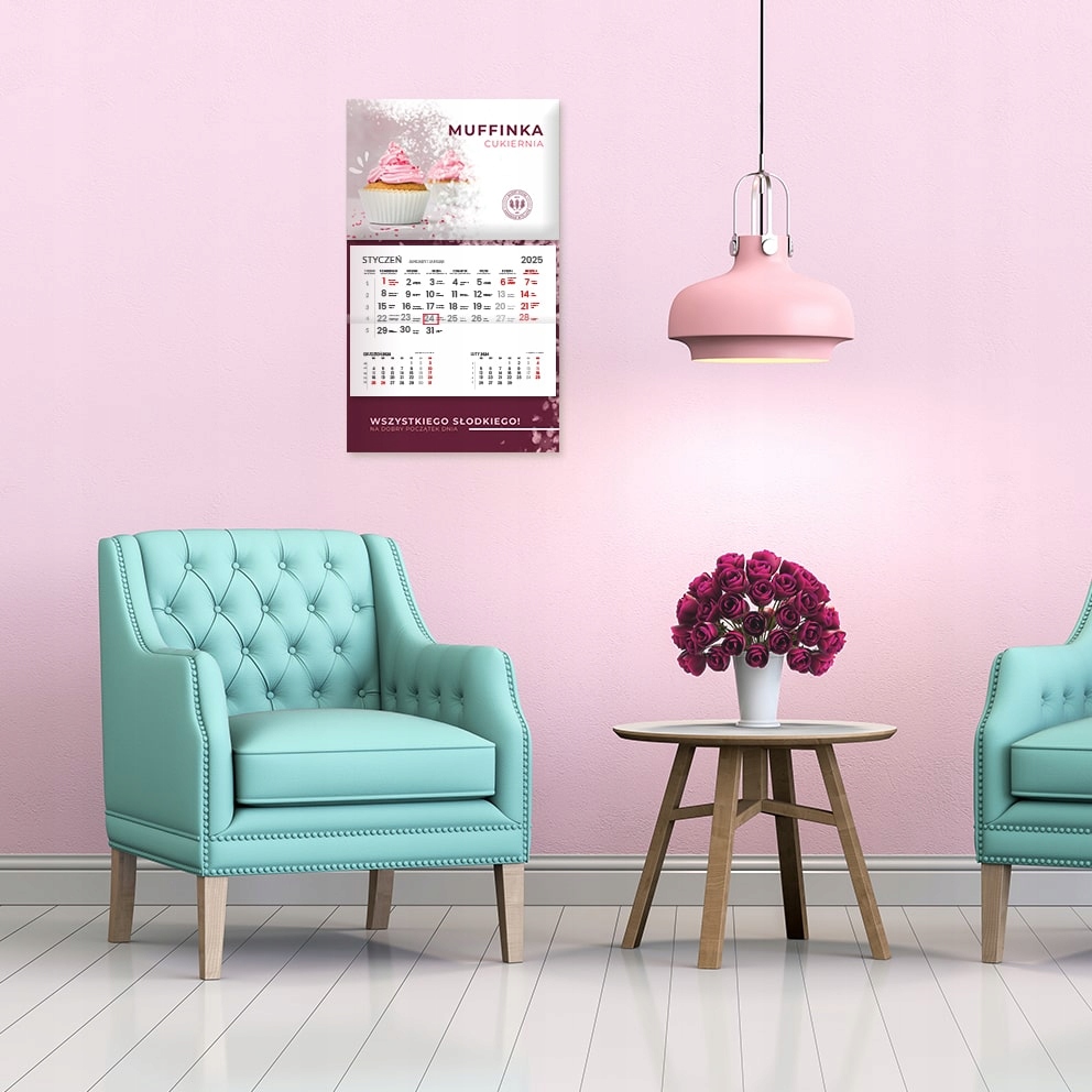 Выпуклый календарь с логотипом стены, напечатанный для 2025 года.