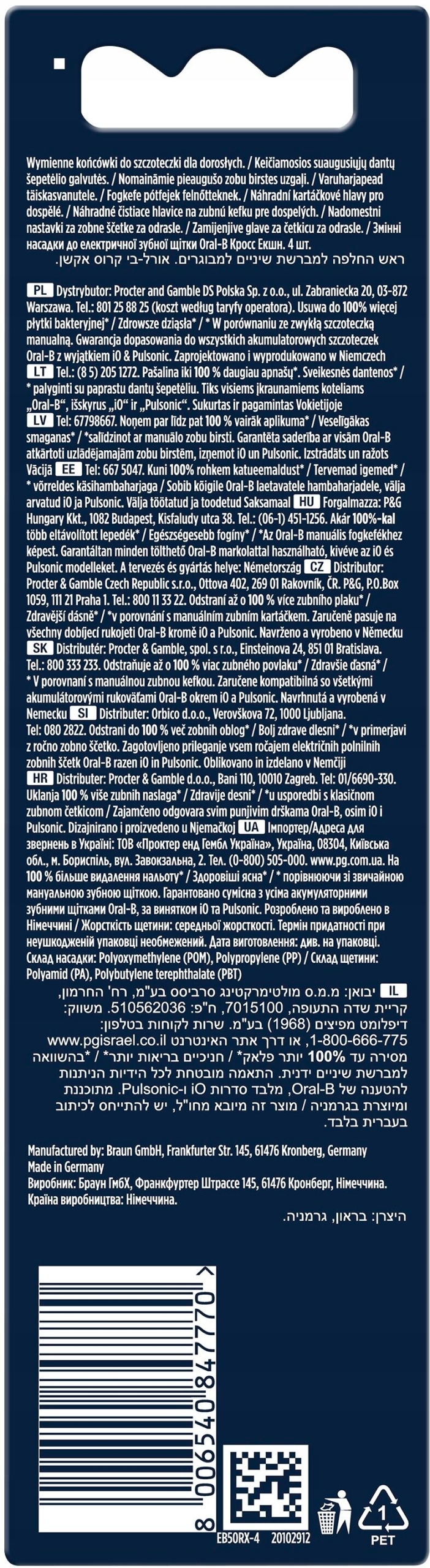 - Модель насадки: Oral-B PRO EB50RX CrossAction