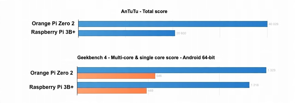 Он содержит микропроцессор Allwinner H616 на базе архитектуры Cortex-A53, такой же, как Raspberry Pi 3 B+. Однако, работая на более высокой частоте, он показывает лучшие результаты, чем упомянутый Raspberry Pi 3 B+.