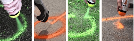 Аэрозоль строительный и геодезический маркер для использования на стенах, тротуарной плитке, асфальте, бетоне и дереве.