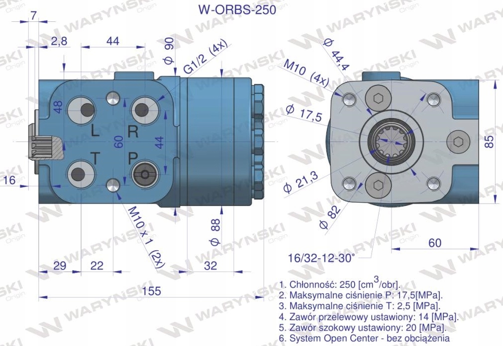 Гидравлический орбитрол w -орбс 250 см3/ стержень с клапанами (система открытого центра - без нагрузки) Waryński h1>