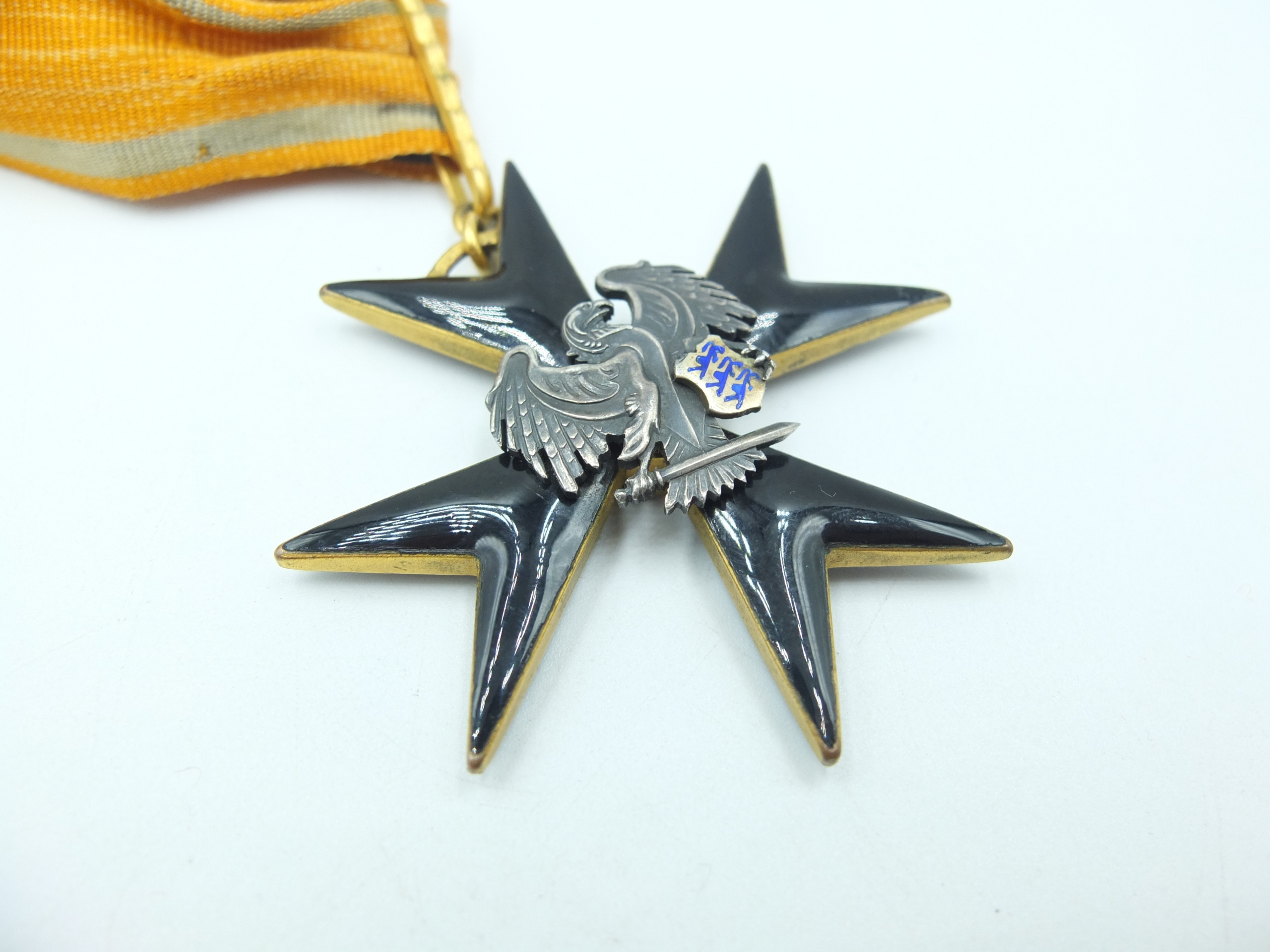 Эстония Орден третьего класса Кросс Крест Командир 1928 - Эмалированный крест; С оригинальной лентой, крестом от межвоенного периода.