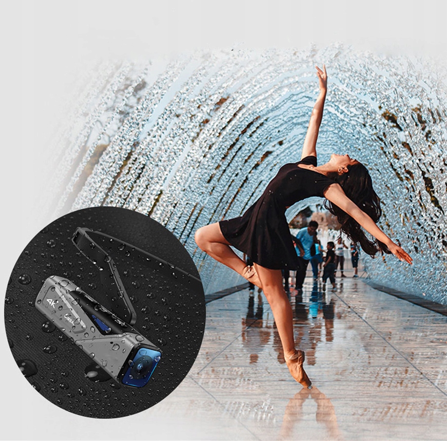 Водостойкость на уровне IP65, отсутствие страха перед дождем и пылью, без дополнительной защиты покрытия набора. Устойчивое строительство в горшках обеспечивает комфорт при занятий на открытом воздухе. В нижней части EP7 используется 1/4 "нить, которая может быть адаптирована к различным аксессуарам и может быть взята с внешней плитой для селфи или штатива. Оболлет имеет стерео -микрофон с двухканальной конструкцией для радиоприемного приема. Диапазон номеров: 10 см ~ бесконечность