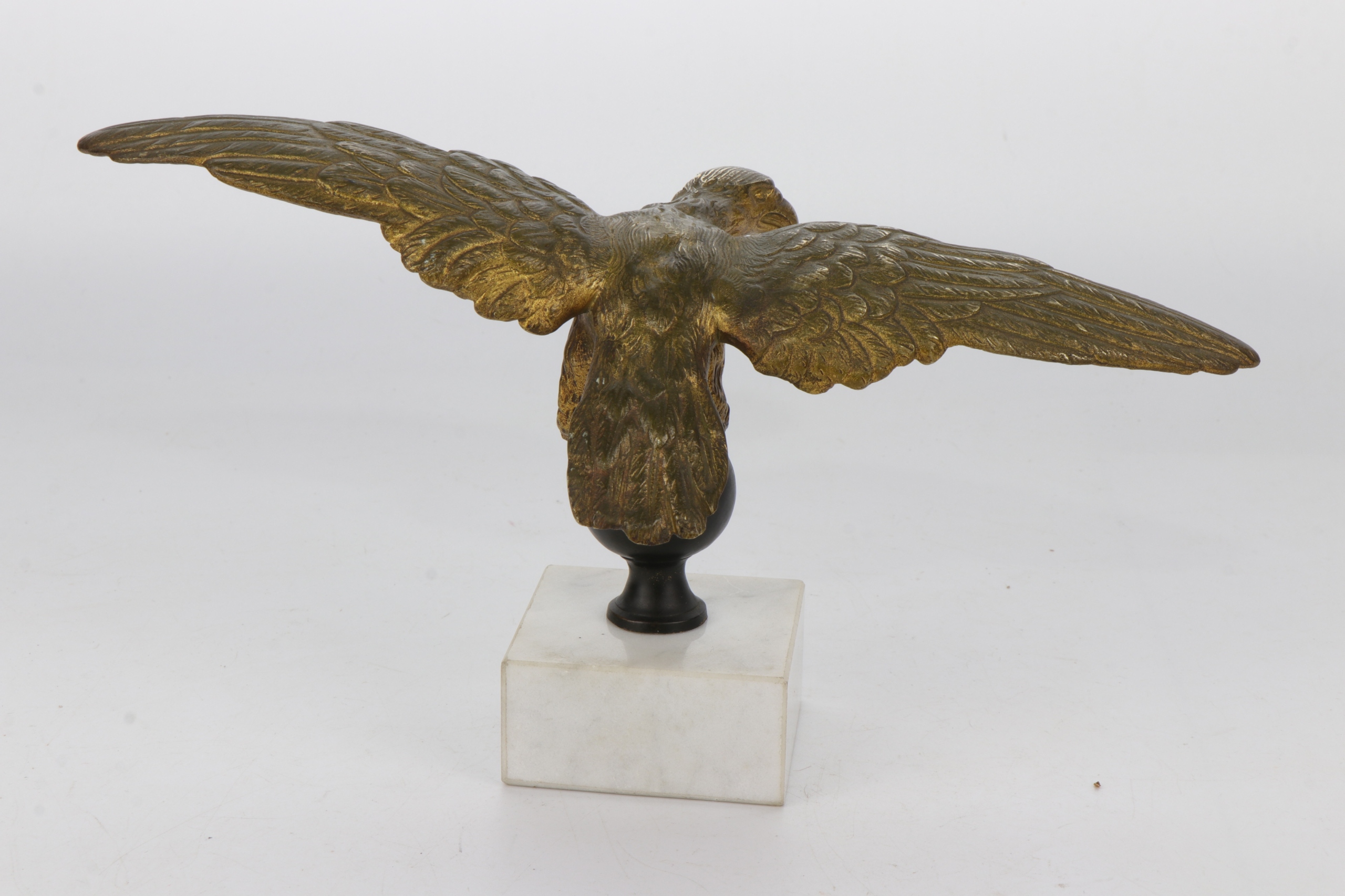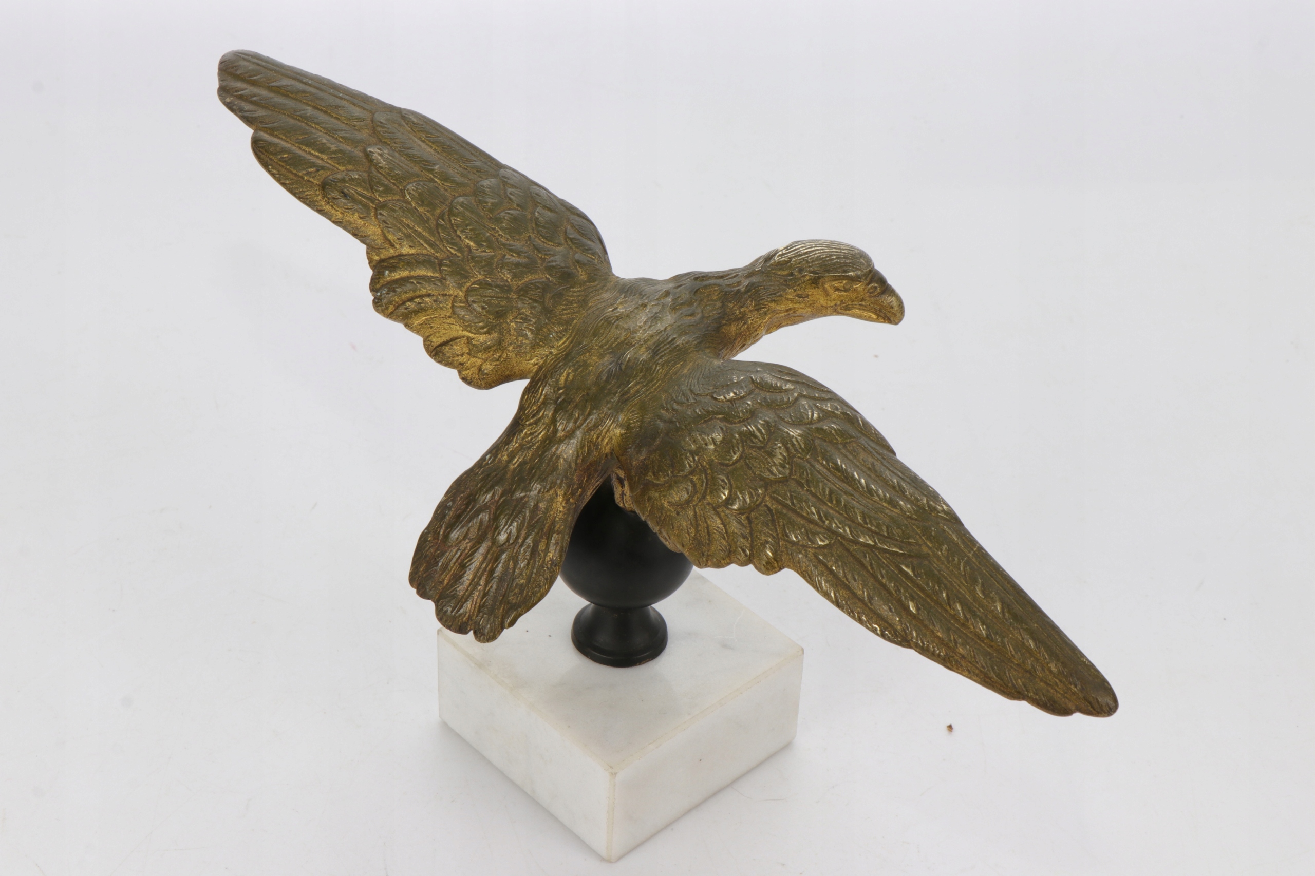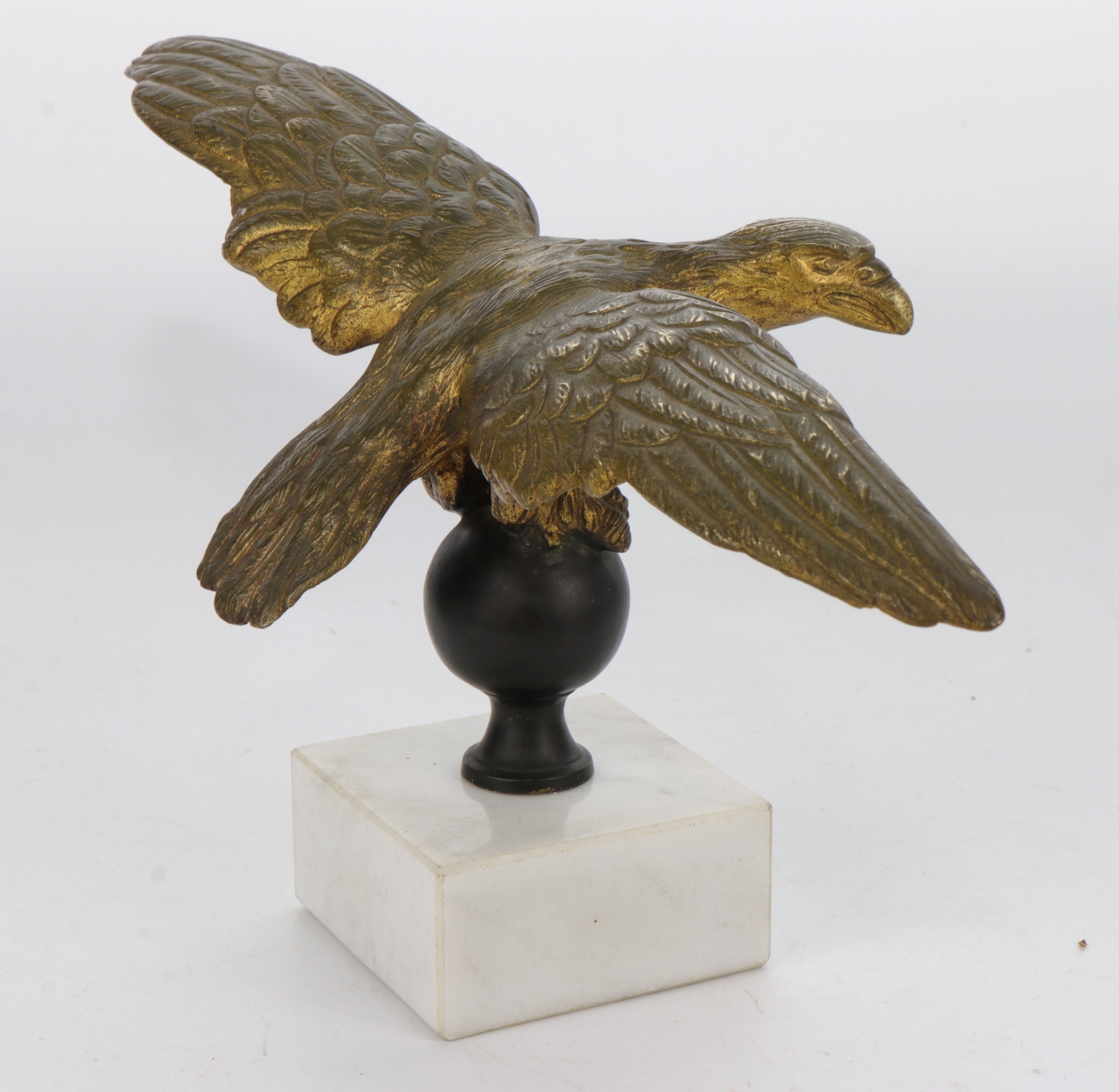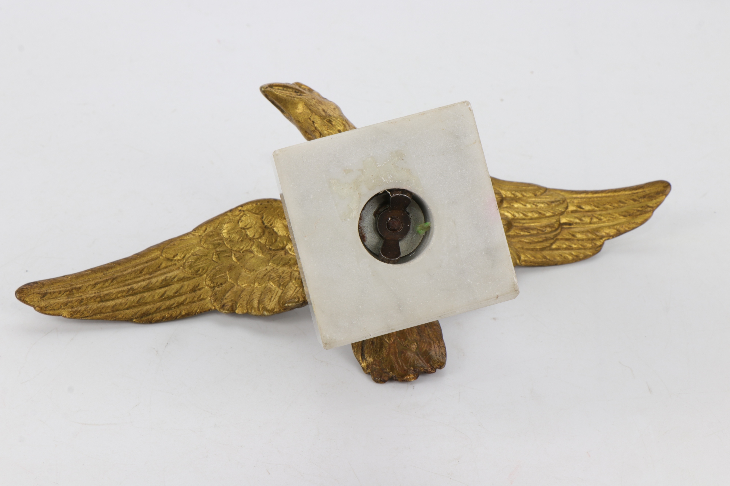 Позолоченный бронзовый орел, установленный на мраморном постаменте. Фигурка отлита очень точно, возможно, изначально это был французский штандартный орел или пресс-папье.