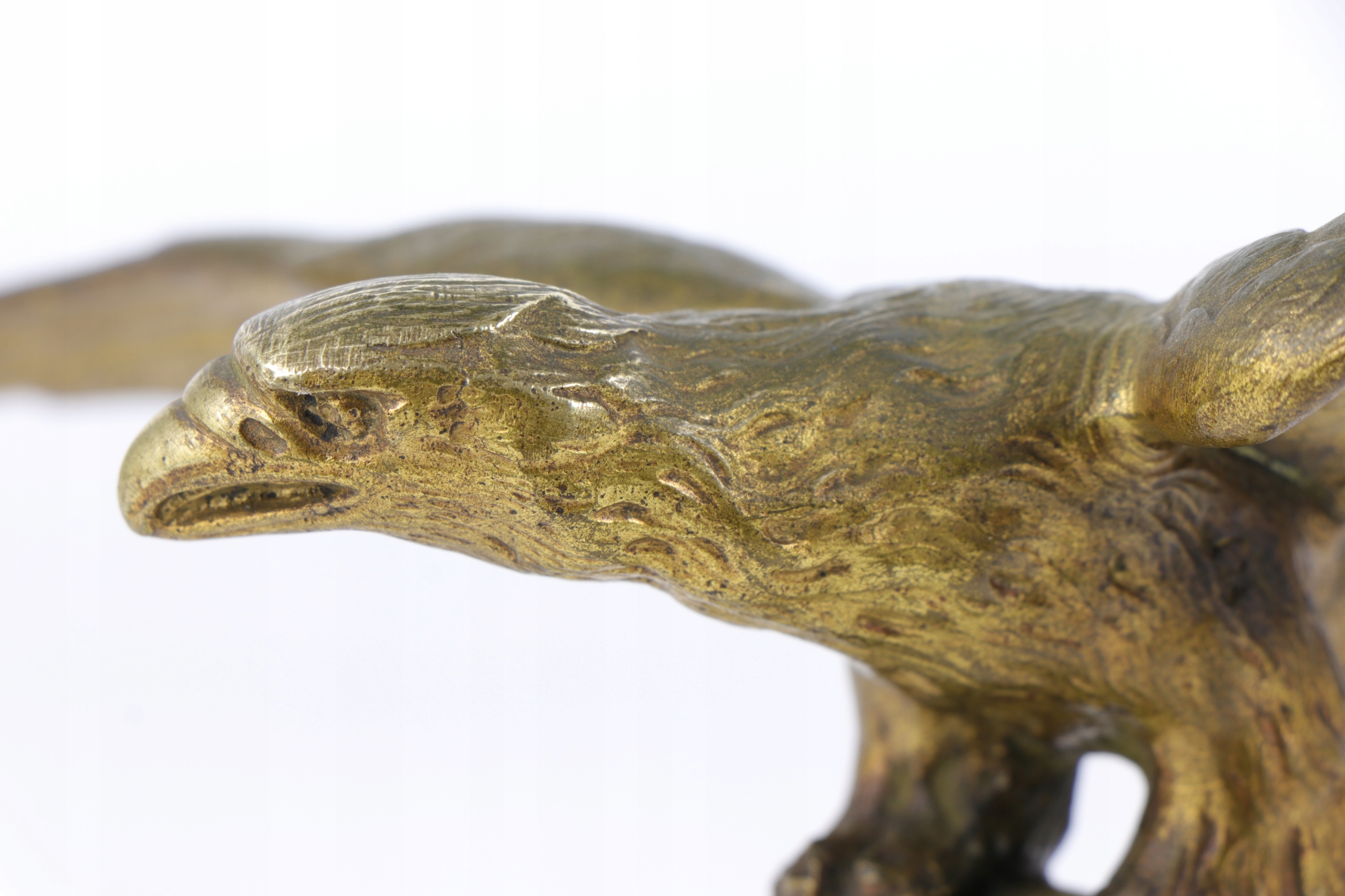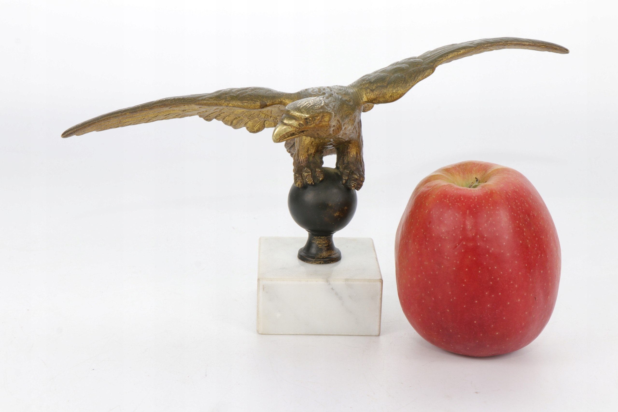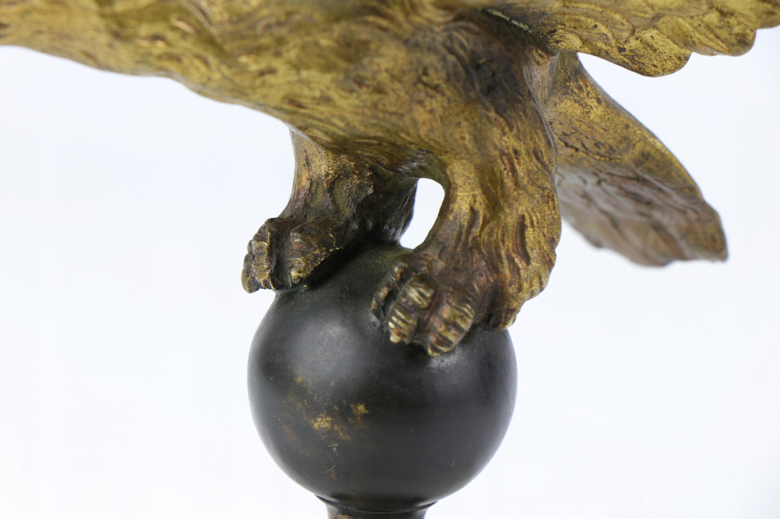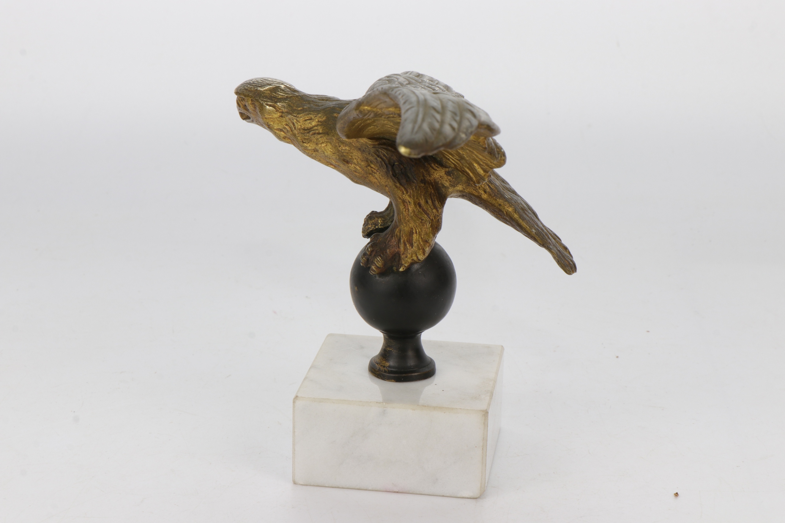 Позолоченный бронзовый орел, установленный на мраморном постаменте. Фигурка отлита очень точно, возможно, изначально это был французский штандартный орел или пресс-папье.