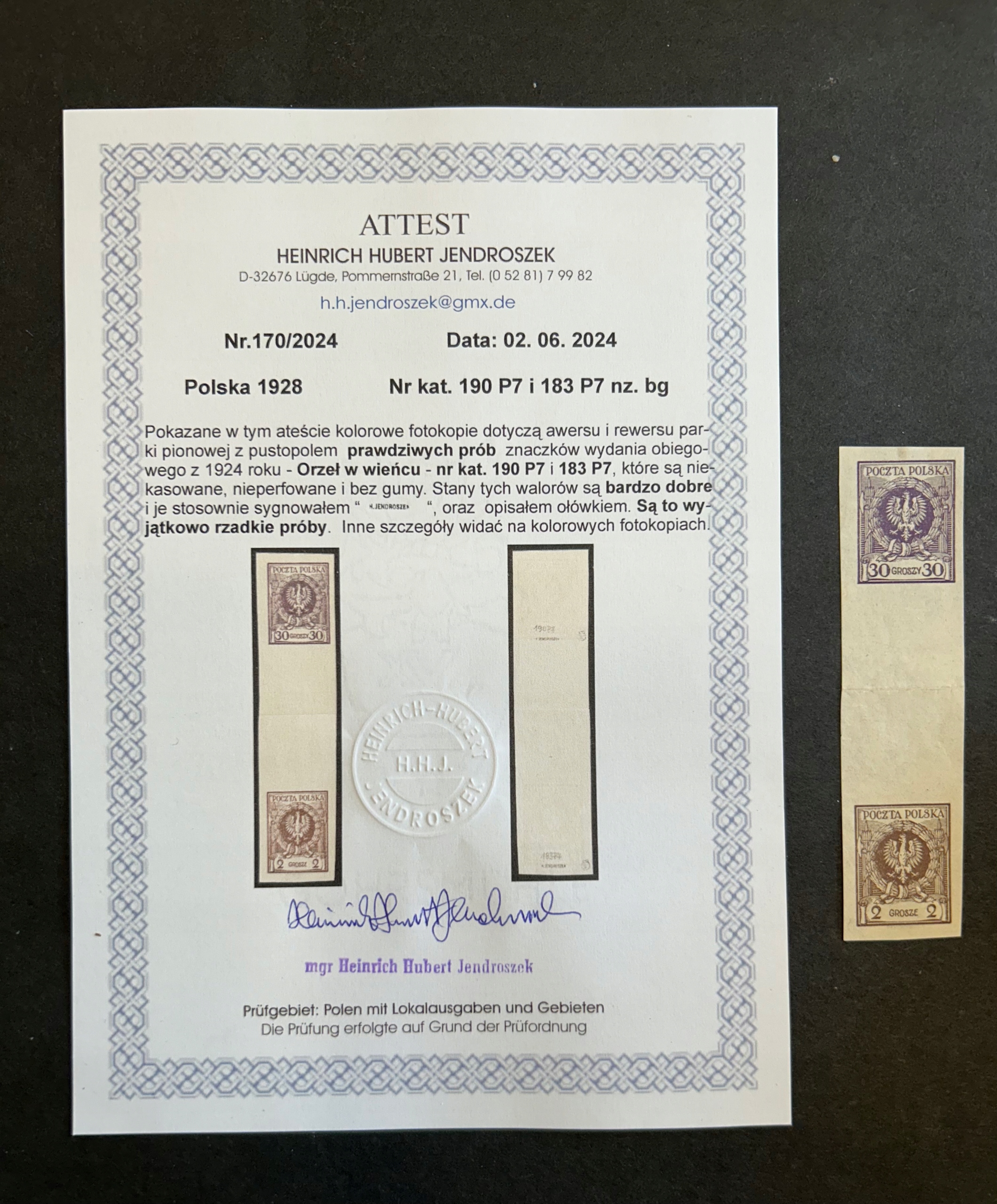 ОЧЕНЬ РЕДКИЙ ПРЕДМЕТ ИЗ СЕРИИ «ОРЕЛ В ВЕНКЕ» - ПРОБКА ИЗ ДВУХ МАРОЧНЫХ ЛИСТОВ В ПАРКАХ - P7 190+P7 183, СЕРТИФИКАТ, МИНИМАЛЬНЫЙ ТИРАЖ, В ОЧЕНЬ СОСТОЯНИИ, ВЫСОКАЯ КАТАЛОГИЧНАЯ ЦЕННОСТЬ - FISCHER 2024 VOLUME II - 5000 злотых, ULTRA UNIQUE PO ZYCY Польская филателия , жду оплаты 7 дней со дня торгов, по истечении этого срока аукцион отменяется и товар снова поступает в продажу