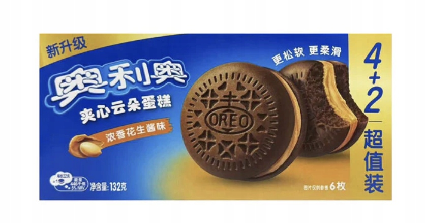Мягкое печенье Oreo с начинкой со вкусом арахисового масла, 6 штук в упаковке.