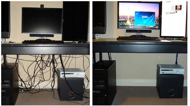 Удобная корзина, установленная в нижней части столешницы, позволяет легко упорядочить все расположенные кабели и провода. вокруг стола и при этом выглядит эстетично.