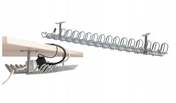 СЕРЕБРЯНЫЙ органайзер для кабеля и удлинитель длиной 70 см, подвешенный под столом, представляет собой отличный и очень практичный аксессуар. решение на рабочем месте, учебе и игре.
