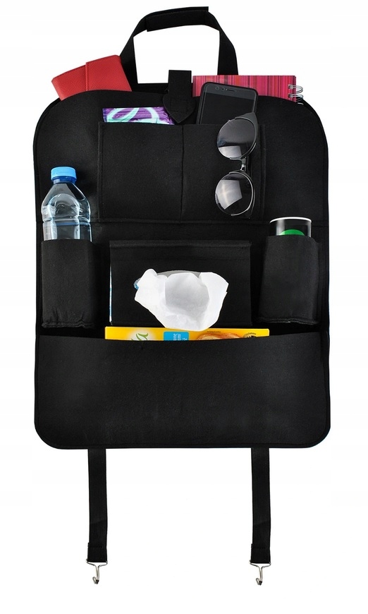 Отличное решение, которое пригодится практически в каждом автомобиле. Органайзер автокресла позволяет легко организовать в машине самые необходимые вещи и быстро получить к ним доступ при необходимости. Фетровый автомобильный органайзер прост в сборке — достаточно прикрепить его верхнюю часть к нижней части подголовника (с помощью липучек на ремнях), а нижнюю часть зацепить за нижнюю часть автокресла (с помощью металлические крючки на лямках). Автомобильный органайзер можно легко установить практически на любое автокресло - устойчивое крепление гарантирует, что органайзер не упадет во время езды.