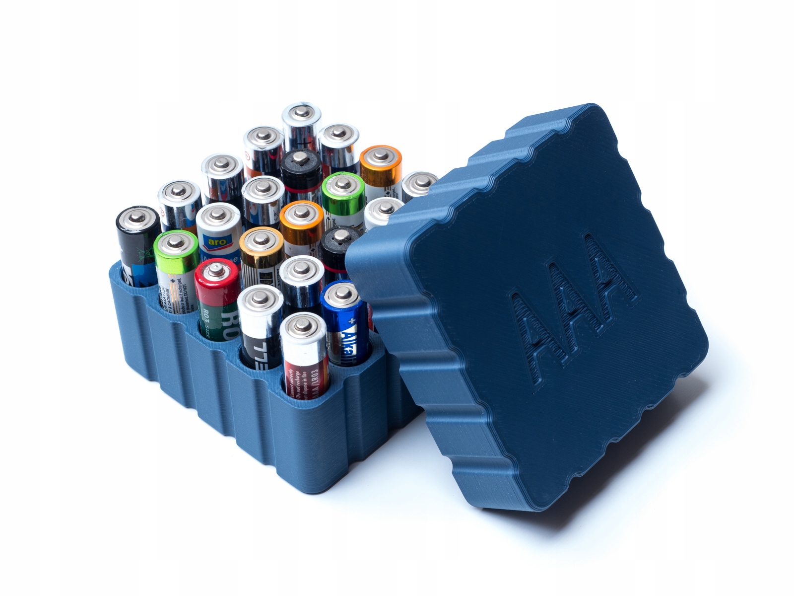 Производимый нами контейнер рассчитан на хранение 25 элементов типа ААА (LR3). Он состоит из двух подобранных частей, оснащенных сильными неодимовыми магнитами, благодаря которым после соединения крышки с основанием коробка никогда не откроется сама по себе. Ваши аккумуляторы всегда будут в безопасности, даже во время транспортировки!