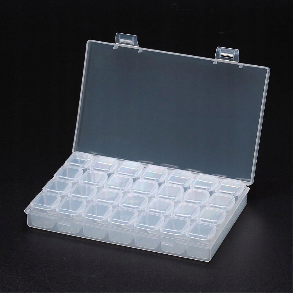 Пластик, Прямоугольный, с 28 отделениями (съемными). Бесцветный
