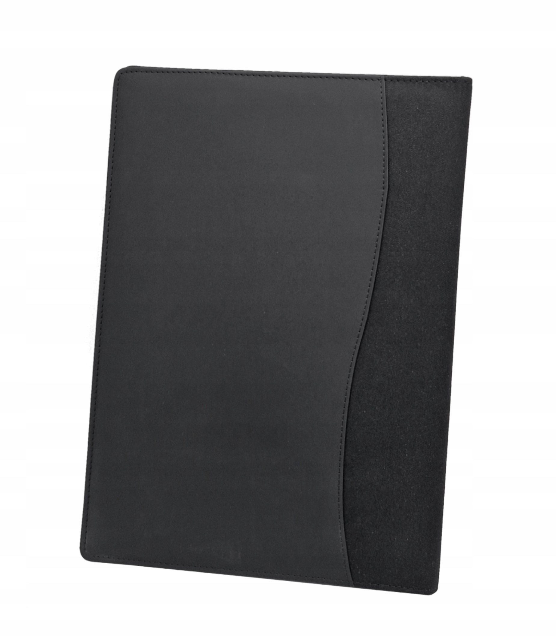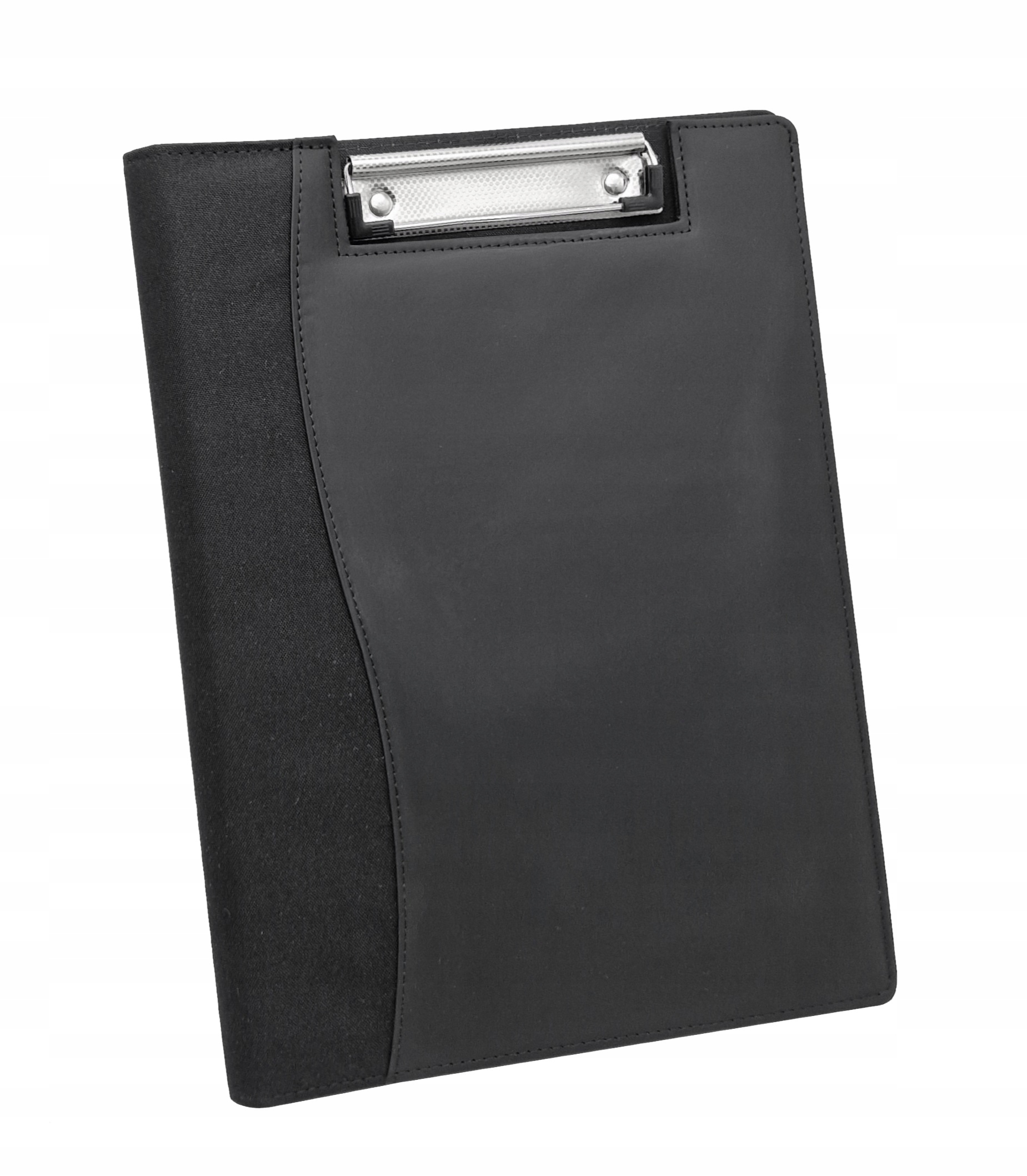 С небольшим внутренним карманом для визитки, вкладышем для карточек меньшего размера, металлическим зажимом для документов и местом для ручки.