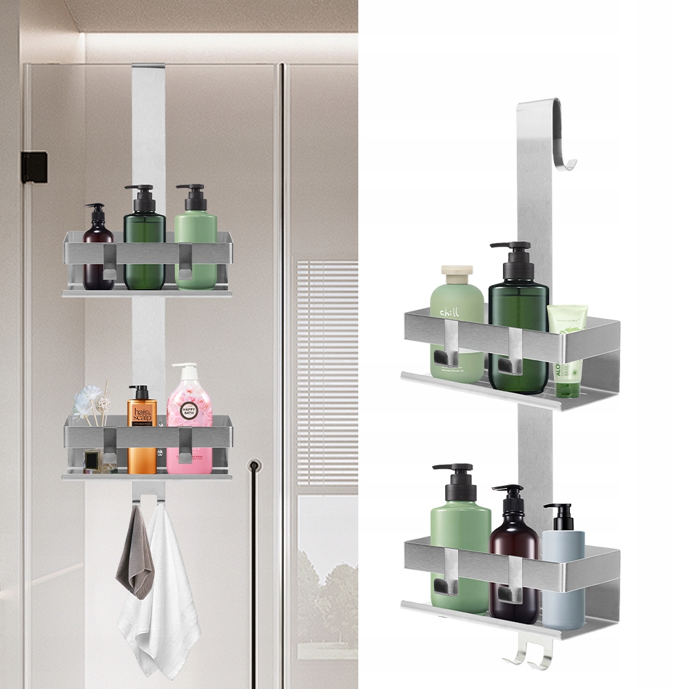 Практическая дверная полка, изготовленная из высококачественной нержавеющей стали SUS304, идеально подходит для ванной комнаты или кухни. Установка без сверления – просто повесьте на дверь.
