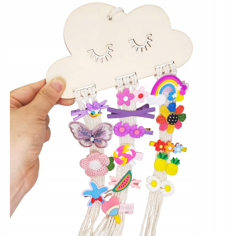 Органайзер-зажим CLOUD для девочек, деревянный подвесной макраме, натуральный цвет