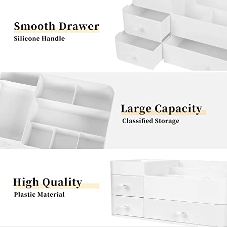 МНОГОФУНКЦИОНАЛЬНОЕ ХРАНЕНИЕ: Органайзер для макияжа с ящиками идеально подходит для ювелирных изделий, средств по уходу за кожей, губной помады, косметики, канцелярских принадлежностей и т. д. Ящик можно легко вытащить и снять. Верхний слой предназначен для хранения наиболее часто используемых продуктов.