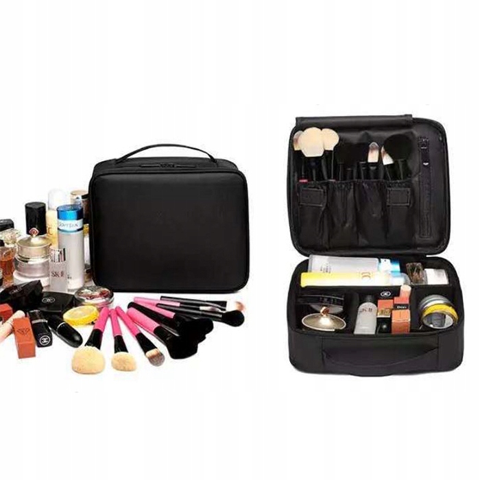Элегантный усиленный футляр для хранения косметики и аксессуаров для макияжа. Изготовлен из водостойкого материала. Он имеет регулируемые и жесткие перегородки, благодаря которым вы можете регулировать их ширину под свои нужды. Дополнительно оснащен широким отделением на молнии и закрывающимся карманом на резинке.