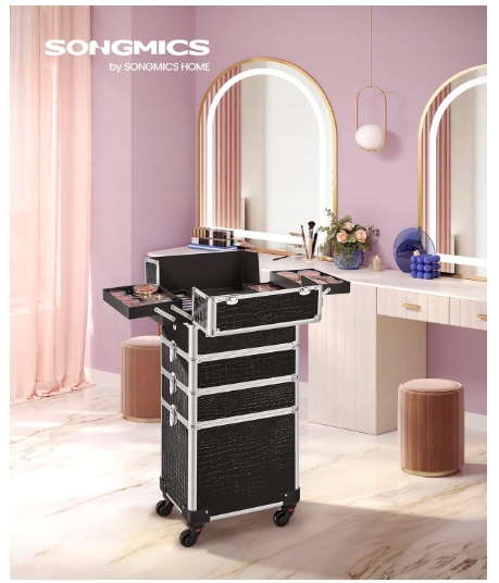 SONGMICS Алюминиевый чемодан на колесах, чемодан парикмахерский, косметичка без содержимого, ручная кладь, Beauty Case, 4 в 1, XXL, черный JHZ06B