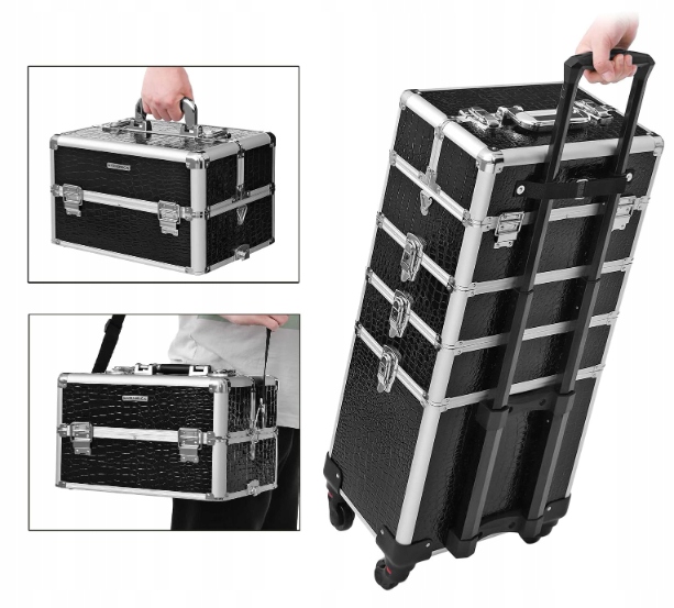 Поворотные на 360° колеса для макияжа позволяют свободно катиться по крышке; телескопическая ручка делает его идеальным для людей разного роста; 6-сторонняя ручка предотвращает раскачивание при подъеме ручки.