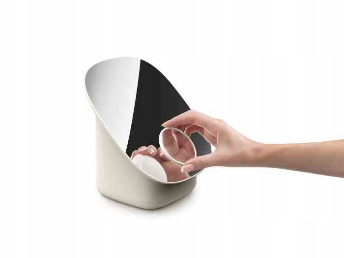<р> - большое зеркало отражает лицо и шею, его можно перемещать - оно также является чехлом для органайзера, <р> - маленькое магнитное зеркало увеличивает в 3 раза - идеально подходит для прорисовки глаз или бровей, не царапает поверхность большого зеркала, <р> - под зеркалом органайзер для косметики со съемным отделением, <р> - дно нескользящее, <р> - все элементы следует очищать вручную, зеркало - салфеткой из микрофибры. <р> Размеры: в закрытом виде: 23 х 21 х 18,5 см (В х Ш х Г); в открытом виде: 40,5 x 21 x 16,6 см (В x Ш x Г) <р> Материал: пластик <р> Цвет: бежево-розовый Шелл <р> Коллекция: Вива