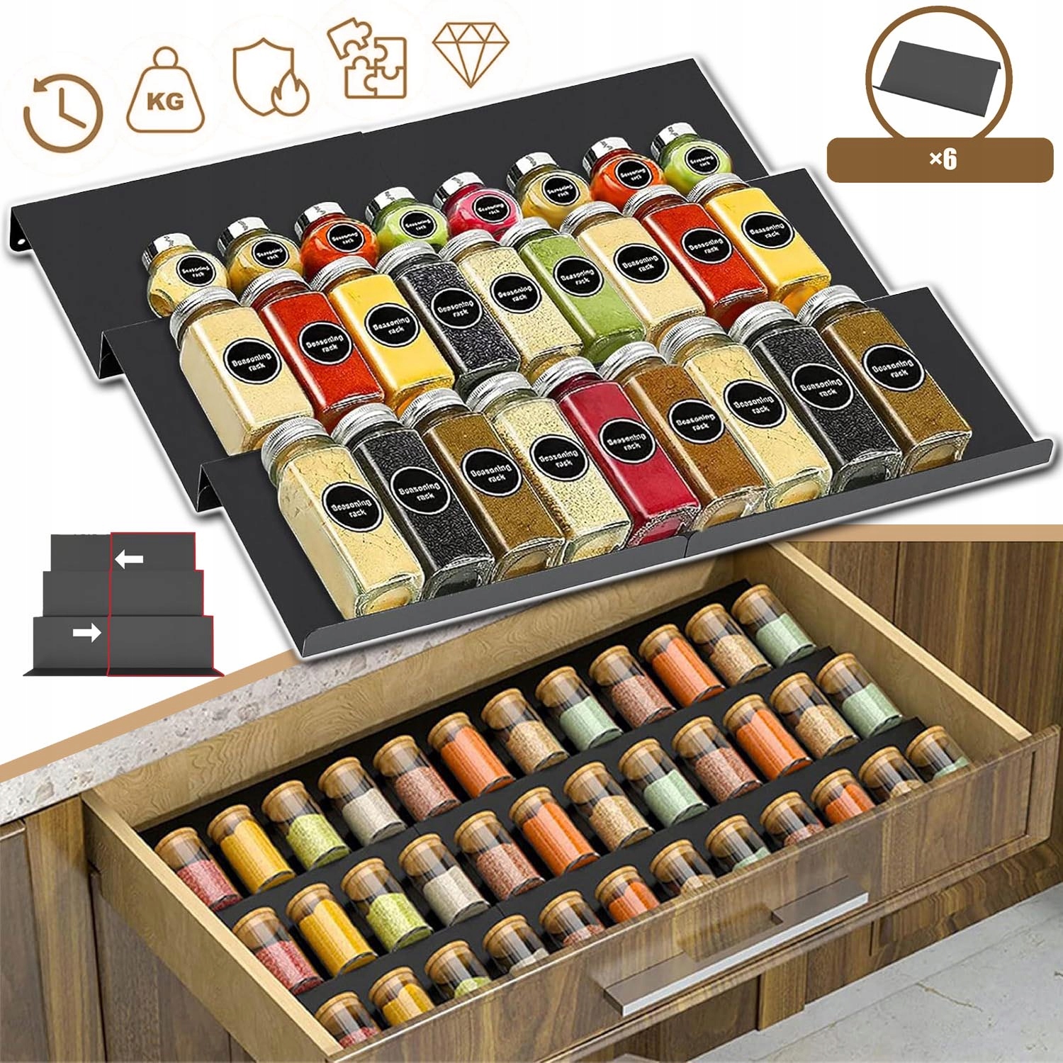 🌈🌈🌈 Многофункциональность: Помимо хранения специй и приправ в кухонных ящиках и столешницах, его также можно использовать в шкафах, полках, кладовых для хранения эфирных масел, контейнеров, витаминов, лака для ногтей, трав, лекарств и других предметов. Вы также можете использовать его в ванной для организации.
