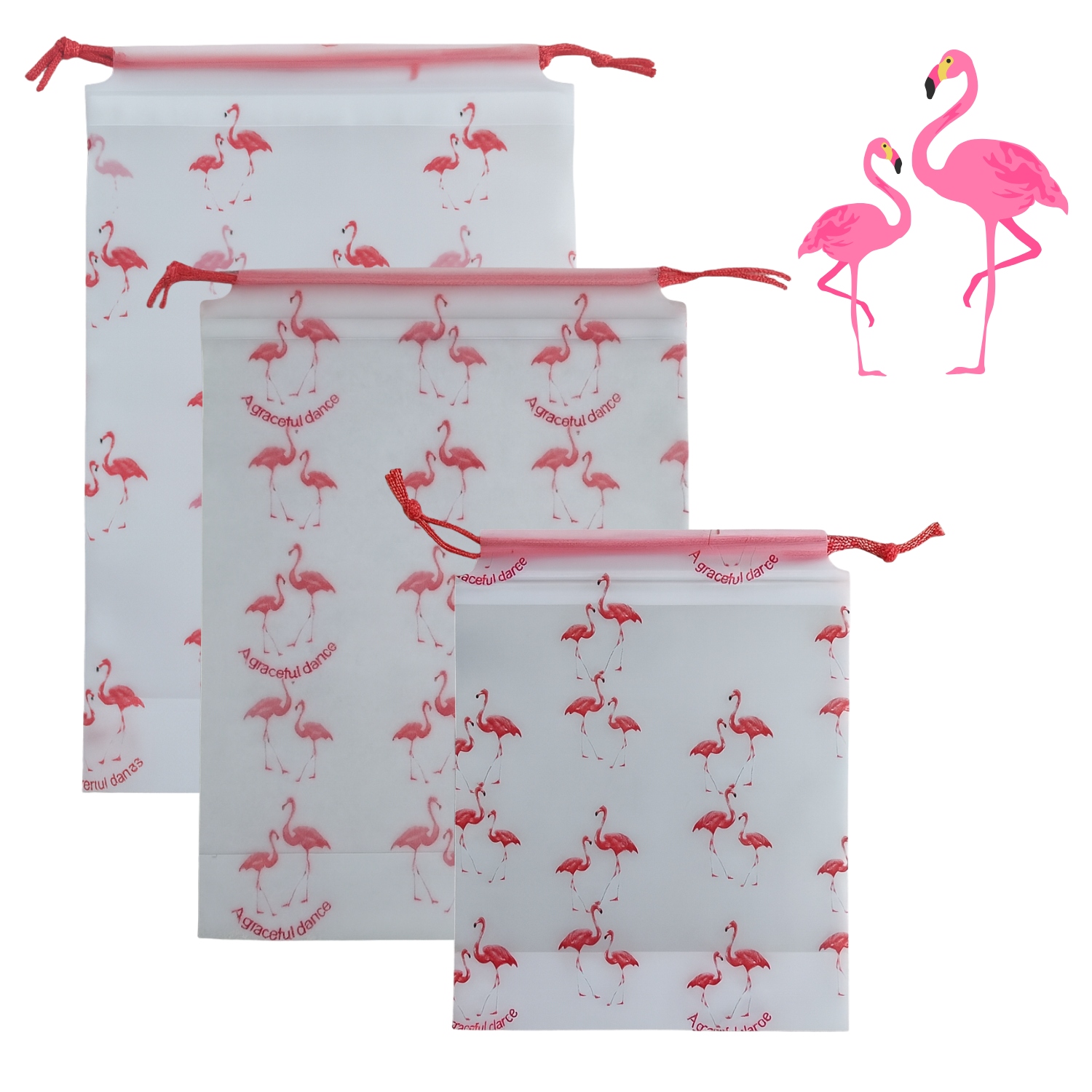 Набор из 3 дорожных сумок с мотивом фламинго — практичное решение для всех, кто ценит порядок и комфорт при сборе вещей. Независимо от того, планируете ли вы поездку в отпуск, поездку на выходные или готовите ребенка к летнему лагерю – эти легкие и прочные сумки помогут вам рассортировать одежду, косметику, обувь и другие необходимые вещи. Различные размеры позволяют гибко подстраиваться под содержимое чемодана, а красочный принт с фламинго добавляет шарма и делает изделие привлекательным даже для самых маленьких.